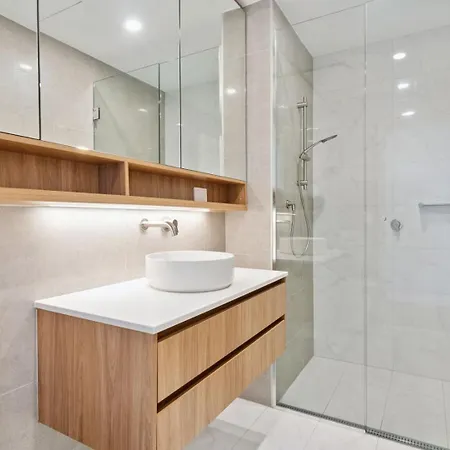 Geniet van het comfort van een badkamer in Argyle On Burswood Appartement, dat met een droger is uitgerust. Er is ook een douche en een wasmachine.